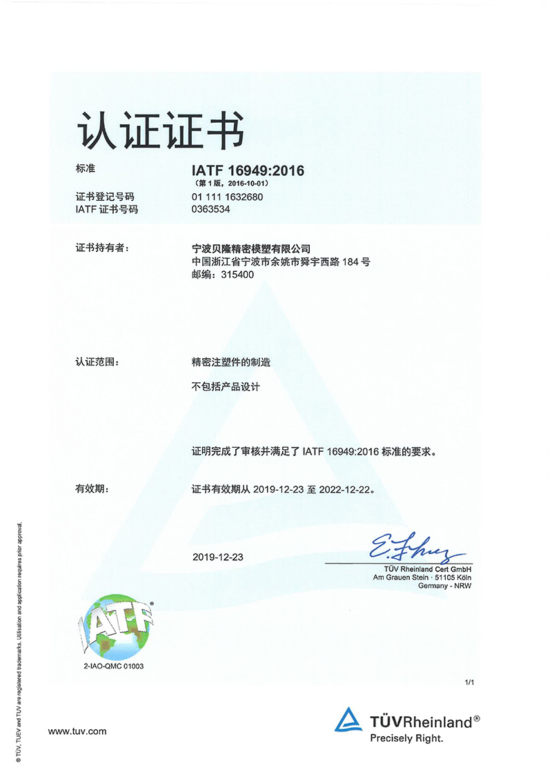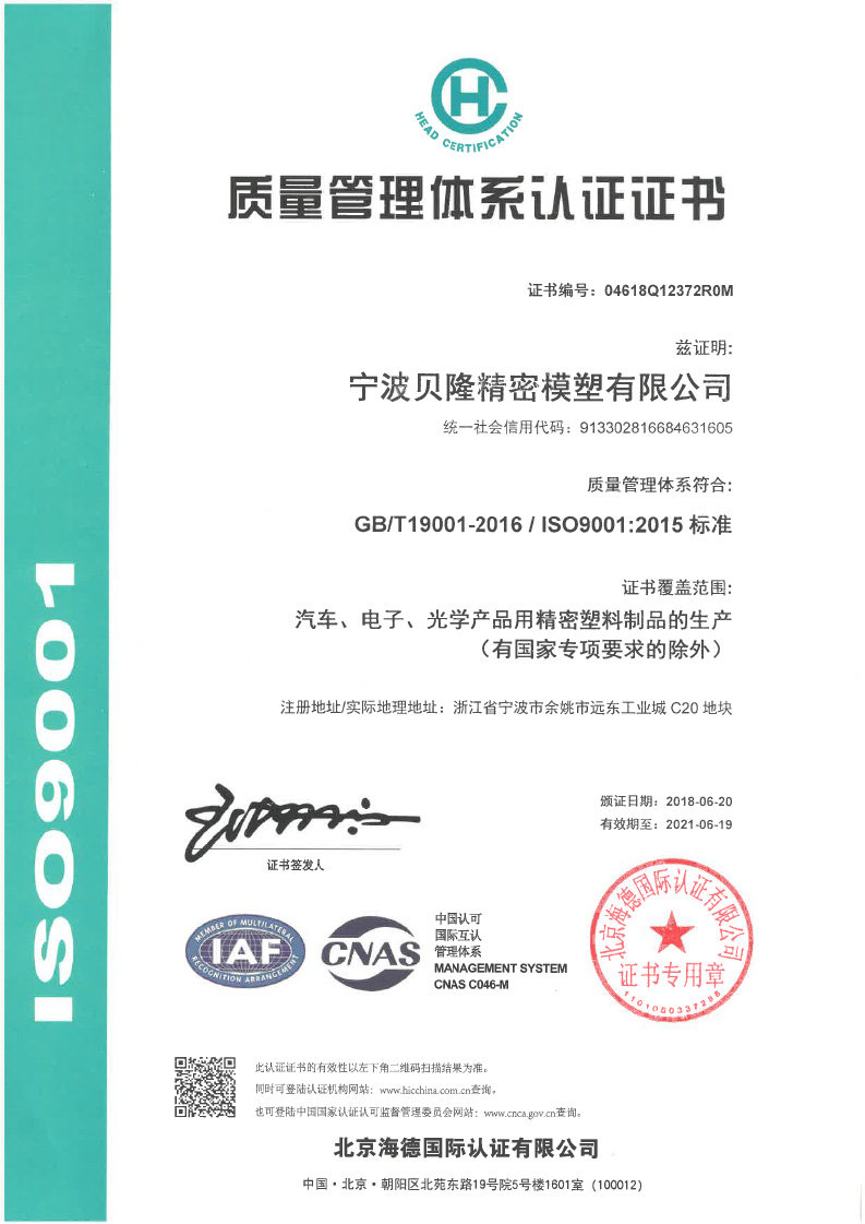 貝隆精密科技股份有限公司(股票代碼:301567)成立于2007年,坐落于中國模具之鄉、浙東名城浙江省余姚市,公司是專業(yè)從事精密注塑、沖壓、埋入成型、模具研發(fā)與制造的高新技術企業(yè)。被評定為國家制造業(yè)單項冠軍、國家級專精特新小巨人企業(yè)、國家知識產權優(yōu)勢企業(yè)。
